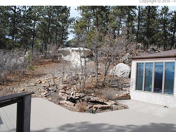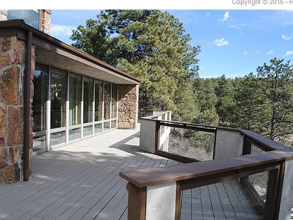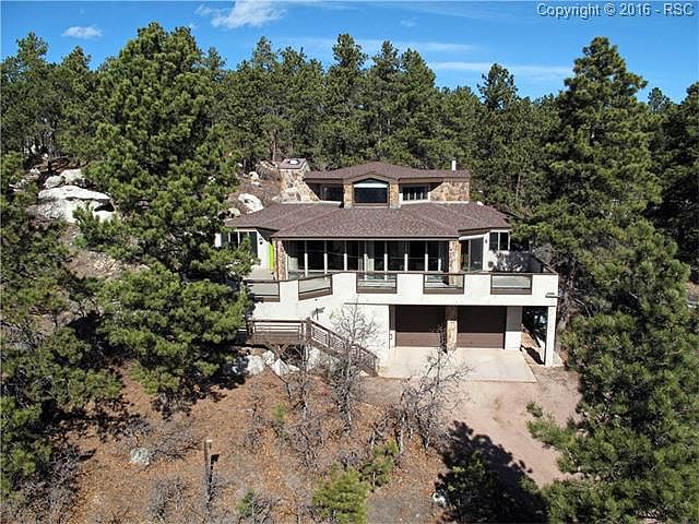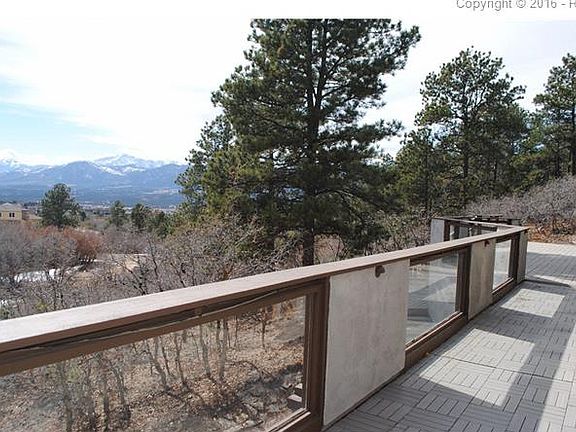 Contemporary open passive solar design w/south facing & miles & miles of Pikes Peak & Mountain Views. Enjoy the trees & Sandstone Rock formations from almost all windows & the full wrap around deck. Solid surface countertops & cherry cabinets w/stainless steel appliances in the huge eat in tiled kitchen. Luxury master suite that has its own floor w/5 piece bath & luxury closet. Enjoy 4th bedroom suite in the basement w/private living area or the private study & gas fireplace. You gotta see to believe this spectacular home!