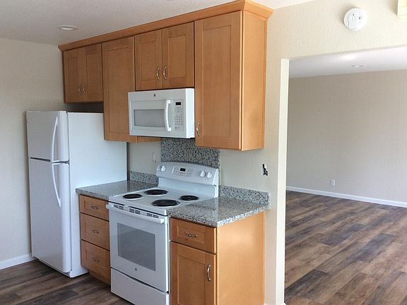 Available August 21st, Upper left unit of a triplex, freshly painted with recessed lighting in living room, dinette area and kitchen, updated kitchen with appliances electric oven, refrigerator, dishwasher, microwave., with granite countertops, laminated floors throughout the entire unit, updated bathroom with cultured marble shower enclosure, new window coverings. One car garage with opener and additional parking space in driveway, on site app operated laundry in the garage. Some storage space in garage, unit is in walking distance to Bayfair Mall, San Leandro Bart station close access to 580/880, Close to Hillside Elementary school, tenant pays for electricity and cable, landlord pays for water and garbage, No pets. Can show it August 21st on. Can do month to month or year lease