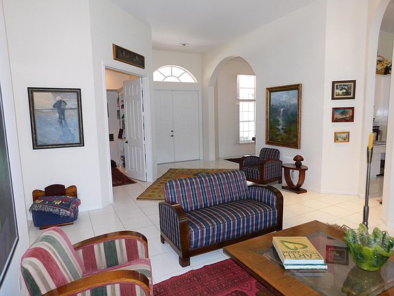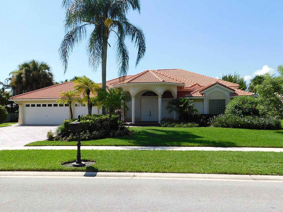 Grand Caymen model, with additional 20' x 19' den/office (could be 5th bedroom with addition of a closet) overlooking the screened pool/patio and water view with 20' x 11' covered patio in addition to main covered patio off the living room. 4 bedrooms, 3 full baths, with both formal dining and breakfast nook. 3-car garage with built-in storage. New tile roof in 2014. On quiet cul-de-sac, with canal view.