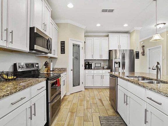 Don't miss out on this impeccable, better than new construction, waterfront lot loaded with upgrades! Conveniently located in Yellow Bluff Landing and available for move-in now, why would you want to wait? All the best features included - durable and easy to maintain wood-look tile, the latest in kitchen styles with white 42'' cabinets, granite, stainless appliances, large eat-in island, double ovens & large pantry. Open concept floor plan is perfect for large groups and entertaining. Breakfast area looks out over waterfront - flow from the kitchen through glass sliders to your oversized, screened lanai. Each bedroom has a full size bath-including one bed & bath downstairs. Need extra space? Huge loft is perfect for extra living area or when you just want to enjoy two different TV shows.