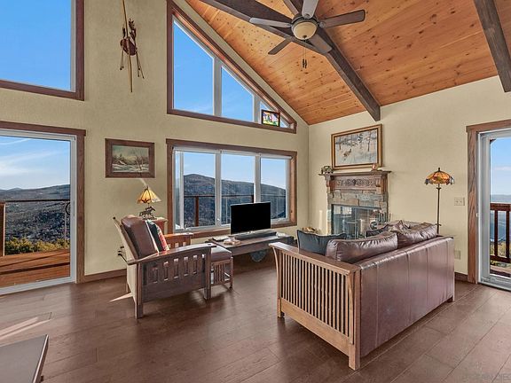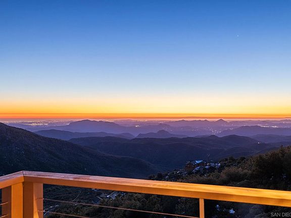 Perched atop the Cuyamaca mountains of Julian, CA, with some of the best views in San Diego County, this newly built custom home offers an unparalleled blend of rustic elegance and modern luxury. Thoughtfully designed to embrace its stunning natural surroundings, this one-of-a-kind home overlooks Lake Cuyamaca and Stonewall Peak, with mesmerizing city lights and fiery sunsets painting the sky each evening. Set on +/-1.7 acres and ~1,274 sq. ft., the 3 bedroom, 2 bath home has an open concept main level with the living room, kitchen, primary bedroom and bath and the remaining 2 bedrooms and full bathroom on the lower level for privacy. From the moment you step inside, you’ll be captivated by the warm mountain cabin ambiance, where carefully procured materials and hand-selected décor create a truly unique and immersive experience. Vaulted wood-beamed ceilings, rich hardwood floors, and wood-burning fireplace set the tone for cozy yet sophisticated living. Expansive windows frame breathtaking views, inviting the beauty of nature indoors. The kitchen boasts artisan cabinetry and hardware, newer appliances, and a spacious island perfect for gathering with family and friends. Enjoy your morning coffee, watch the deer as they cross through your property and stargaze in the evening all from the privacy of your expansive deck. The home is ideal for family gatherings, holiday celebrations, watching the seasons change and making memories that last a lifetime.