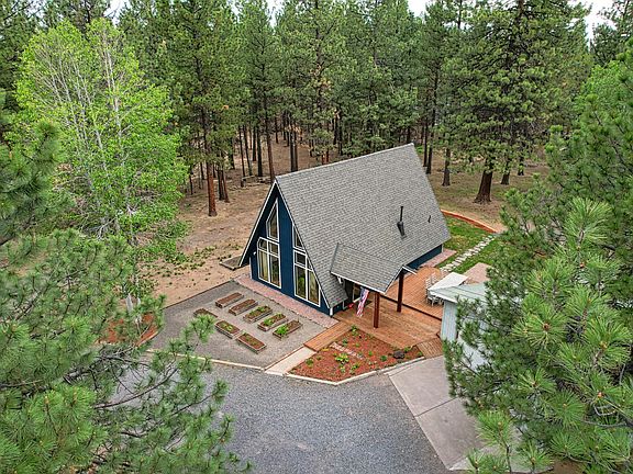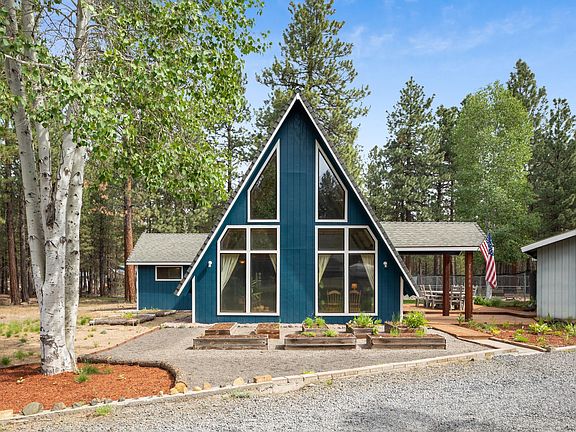 Introducing this timeless A-frame home situated on a 1-acre lot in the town of La Pine, Oregon. This property offers a blend of rustic charm and modern convenience, making it the ideal retreat for those seeking a peaceful lifestyle. This unique home features the classic A-frame design, characterized by its distinctive sloping roofline, wall of windows, and spacious interior. Embrace the cozy, inviting, and unique atmosphere right as you step inside. Nestled on a generous 1-acre lot, this fully fenced and gated property provides ample space for outdoor activities, gardening, entertaining, caring for animals, and enjoying the natural beauty that surrounds you. Inside, you will find two bedrooms (one upstairs and one downstairs), a loft space, one full bathroom downstairs, a kitchen space and an eating area. The wood pellet stove heats up the entire home in the winter, and the slab foundation keeps things cool in the summer. Looking for your dream home or a hot rental, this is it!