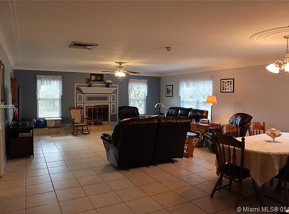 This 5 BR/3 BA home sits on a 5 acre income producing avocado grove. Home has a 23x18 game room; great for entertaining guests. Living room has a wood burning fireplace. Kitchen has granite countertops with cherry wood cabinets, pass through window & pantry/storage room. Master bedroom has his/her wall to wall closets. Split bedroom plan with in-laws quarters. Besides avocados, property has mango, bananas, pineapples, key limes, guavas, oranges & tangerines. 13 Oak trees on the property as well. 3 car garage to store your cars or toys along with a pole barn. Dog and chicken coop; outside lighting.