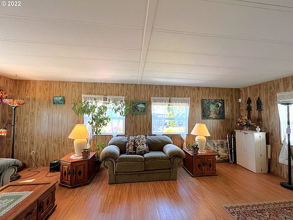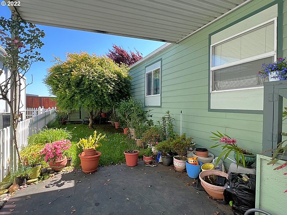 Enjoy the peaceful area and beautiful gardens surrounding this very nice 2 bedroom, 2 bath manufactured home. In 55+ park, close to shopping, beaches, river and fishing. Included is a garden shed. Spacious open flow living room dining room. Nice primary bedroom suite. Laundry room with sink. The large covered carport is big enough for 2 cars. Buyers must be park approved. Monthly park fee $534 includes water, sewer.