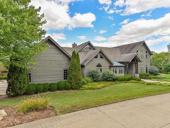 Shadow Creek Farm is a breathtaking equestrian estate in the heart of horse country. The impressive architect designed timberframe residence is reminiscent of a luxury lodge in Montana. No stone was left unturned when this was constructed. From the stalwart foundation to the design features such as the two story creekstone fireplace nothing was forgotten here. The great first floor plan has a lovely entrance foyer which flows to the primary bedroom suite and guest suite on one side and opens to the main entertaining areas on the other side. The primary suite with views of the pond and acreage beyond has a delightful sitting room with fireplace, massive closet with detailed design features of its own, expansive bath with dual vanities, soaking jetted tub, walk in shower/steam and water closet. To the left of the entry foyer the first stop is the "wine room". Formerly a home office, the current owners have converted this space to a cozy yet sophisticated tasting room and lounge. The dining room, kitchen and great room flow seamlessly one into the other with exposed beams, soaring ceilings , white oak floors among the many defining features. The recently renovated kitchen is a gourmet chef's dream with wormy chestnut custom cabinets, honed granite countertops, Thermador appliances (including 6 burner gas stove with grill/griddle, double oven, warming drawer, refrigerator) and double basin farm sink. Off of the kitchen and leading to the 3 car garage (with dog wash area) there is a conveniently located half bath and large laundry room. The second floor has three large bedrooms and two full baths. The large unfinished basement provides great storage and room to grow if needed. The horse facilities include an outdoor riding arena, nice barn with two stalls ( could be more with modification) tack/feed room, office/workshop, hay loft and full bath) equipment shed, run in sheds in pastures. There is also an enchanting garden with chicken coop too. Approximately 25 lush acres of horse pastures with four board fencing. Gated security entrance and security system in the residence.