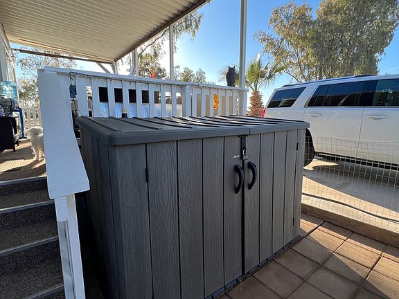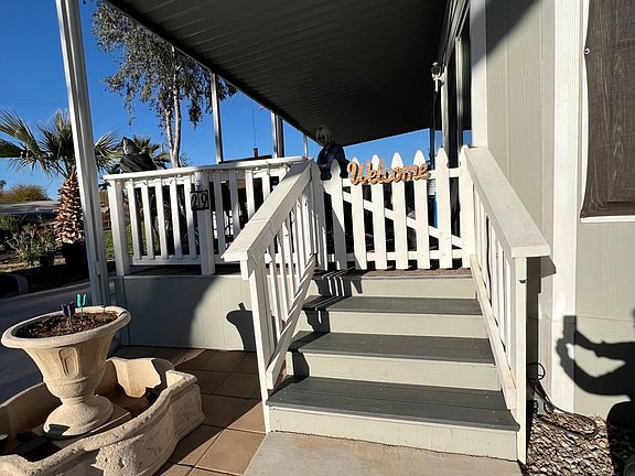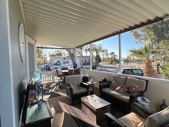 Tired of a big house and want to down size? This park is the perfect place to call home. ONE OF A KIND corner space, large porch, lake views and an amazing sunset are just a few details this home has to offer. This 2016 Park Model has many upgrades throughout. It's a must see, Beautiful inside and out. This park is Country Club living with a beautiful golf course, but there's so much more at Rio Bend. There is a vast array of sports, including pickle ball activities and spa features. Centrally located in the heart of this beautiful resort is the activity building, tiki bar in the restaurant, the snack bar, a pro shop, library room, computer room, swimming pool, and laundry/restroom facilities. Call today for your private tour.