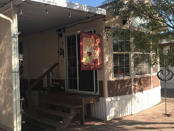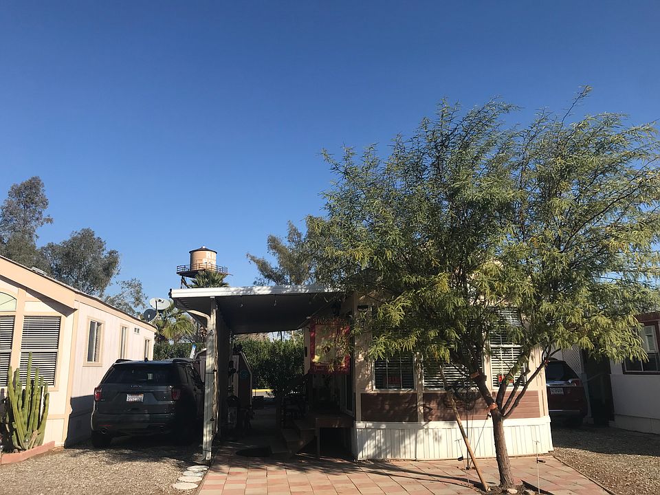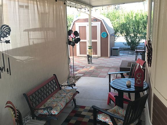 This immaculate turn-key Cavco Park Model is conveniently located on the first street of Rio Bend RV and Golf Resort. This resort is the top 55+ RV destination in California. This furnished Park Model is in excellent condition with quality upgrades. Refrigerator and gas range are full size. Air conditioner and water heater are five years old. Quality indoor shades and additional sunshades. Prime location close to pool, office, laundry room, activity center, restaurant and bar and entertainment. The full sized paved and covered patio comes with sunshades and patio furniture included. Outdoor shed. Ample parking for both a car and a golf cart. Space/land rent is $869.00 quarterly. This is a must see park model. For more information please call: 760-791-2034