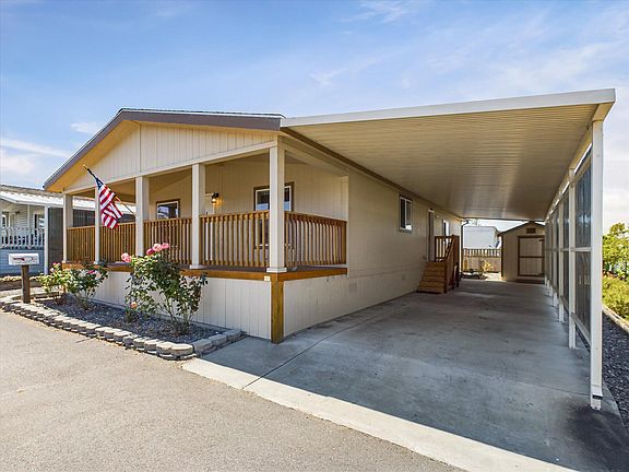 OPEN HOUSE FRIDAY SEPT. 13, 2024 2-6 PM. This is one of the newest homes in this senior park and comes with a large front deck with views of the mountains. This home is in excellent condition and is ready for its new owners. As you enter the home the vaulted ceilings definitely catch your eye. You will be impressed with the beautiful kitchen including a large pantry and the open floor plan perfect for entertaining and relaxing. The primary bedroom is large with a deep closet and a gorgeous primary bathroom with double sinks. The yard is fairly maintenance free with fragrant rose bushes. Park amenities include use of the pool room, pool tables, party room with kitchen, library with big screen TV, Holiday events, Bingo, and even donuts!