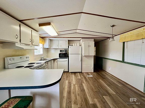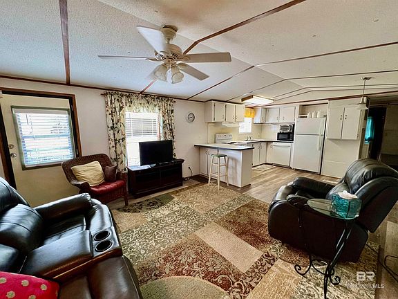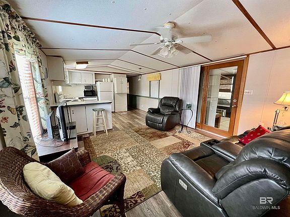 Ready to earn your salt life sticker? This home is located in the Perdido Pines section of Spanish Cove. The golf cart community is on the Perdido Bay and you own the lot. This split floor plan is roomy and includes most of the furnishings and housewares at no additional cost. The vinyl flooring and en-suite walk in shower are 2 yrs old. The roof is 6 yrs old. The stove, refrigerator, washer and dryer are approx. 3 yrs old. The sunroom room is a great addition to relax and visit with friends or family and not included in the sq. footage. There is also a covered deck, attached carport and additional outside storage. Spanish Cove has so much to offer. Your HOA amenities include but are not limited to 2 club houses with a play area, a year round pool that is covered and heated in the winter, fishing pier and beach area on the Perdido Bay. There is a workout room, laundry facilities, showers, tennis/pickleball courts and scheduled activities for all. Lillian is centrally located to Fl and Al shopping, restaurants, entertainment and of course the sandy white beaches. Bring your boat. The Lillian public boat launch is just a couple of miles down the road. There is a 1 time buy in fee of $650 and a $150 lot transfer fee per lot. All information deemed important to be verified by the buyer during their due diligence.This home is to be sold As is Where is. Buyer to verify all information during due diligence.