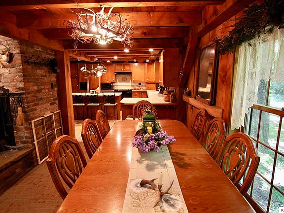 Start living the Island Life at this one of a kind stunning home w/ 25' of water frontage! Private gate entrance to meandering drive through 5 acres of lush woods sits the Longhouse of Put-in-Bay. Once a toured home, this beautiful structure takes you back in time to recapture the spirit of the Nordic forefathers, built to an 80% scale model of an ages old Viking building from Denmark. Using more than 46 tons of white pine from New Hampshire having 12 solid wood walls, nostalgic touches such as the brick fireplace w/ built in grill, & the woodwork! Stunning wood beams characterize each room along w/ gorgeous wood floors! Vaulted great room w/ loft enjoys views of the serene wooded setting. Large garage & workshop, golf cart barn & 3rd shed. Luscious woods lead to 25' of Lake frontage. For over 20 years the owners ran a lovely Bed & Breakfast for people visiting the island. For the last 6 years it has been enjoyed by the owners and their family. Life is short...buy this lake house!