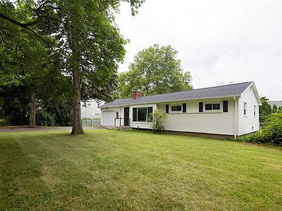 Enjoy the luxury of single-floor living with plenty of room for everyone inside and out! Thoughtfully appointed & striking from the moment you drive up. The concrete walkway & steps lead you to the light-filled home featuring refinished dark hardwood floors, upgraded & expanded eat-in kitchen '23 w/ chevron backsplash, NEW appliances '23 & recessed lighting, 3 bedrooms w/ recessed or overhead lighting, upgraded 2 baths w/ contemporary finishes, large living room with decorative fp w/ mantel & white horizontal accent wall, full, finished basement is inviting & boasts a woodstove. Additional features include; Vinyl siding, 1.5 car garage, 200amp service, shed, mudroom entry w/ 1st floor laundry, newer thermopane windows, roof '23, hot water tank '18, spacious front and back yards, & the crown jewel the in-ground concrete pool to enjoy in the summer heat, plenty of outdoor entertaining space, patio, & more! Nothing left to do but move in. Close to parks, Wegmans, Irondequoit Bay, shopping, library, and restaurants. The airport & downtown Rochester are within 18 minutes. Delayed negotiations: Offers due Thursday 7/18/23 at 4PM w/ 24 hr life of offer.