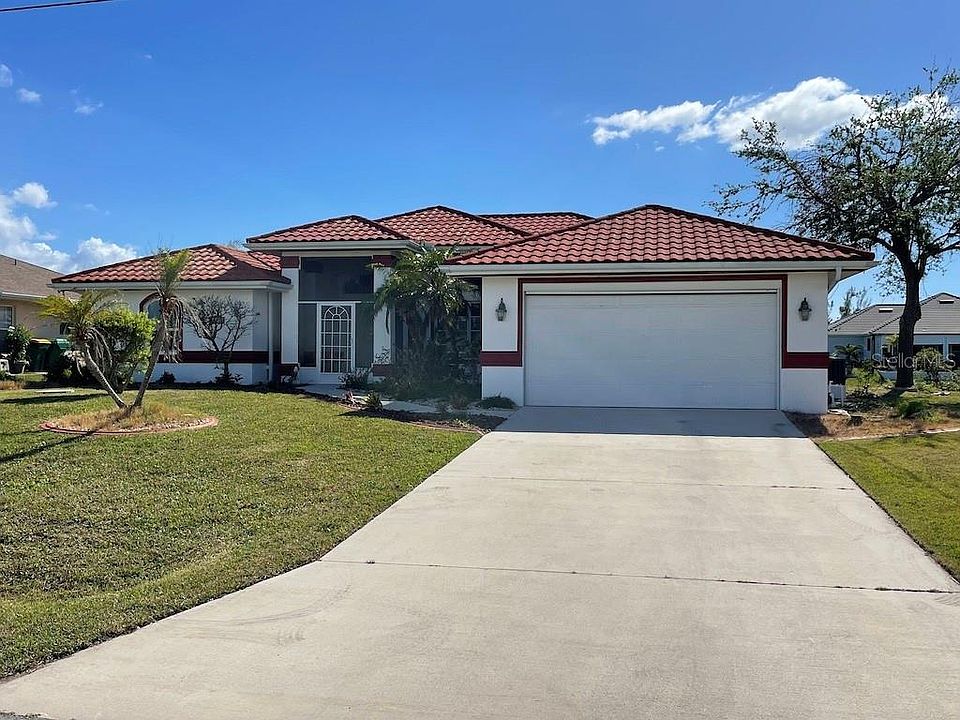 Make your waterfront dreams come true in this beautiful home located in the highly sought after community of South Gulf Cove. This 3 bedroom/ 2.5 bath / 2 car garage split floor plan home has gorgeous views of the canal with access to Charlotte Harbor and the Gulf of Mexico. With tall ceilings and an open floor plan, this home is perfect for relaxing or entertaining. The spacious master bedroom boasts beautiful water views, as well as two large walk-in his/her closets, and an en-suite oversized master bath that has both a soaking tub and a walk-in shower. Rest easy knowing all 4 sliders and most of the windows were upgraded to hurricane impact in 2018. Relax in your own tropical oasis as you float in the large sparkling pool or sit at the built in pool bench and table area while sipping on a drink as you watch the sunset. The outside pool area also has a half bath and outdoor shower to rinse off with after a long day on the boat or at the beach. This lot has 80 feet of concrete sea wall along which is an updated composite Dock(2015) equipped with electric, water supply and a boat lift. South Gulf Cove offers over 55 miles of canals throughout the neighborhood and is close to Boca Grande Island beaches, Manasota Key/Englewood beaches, the Cape Haze Pioneer Trails and Park area, the Peace River Botanical Beach area, shopping, restaurants, several area golf courses and world class fishing. What more could you ask for? Check out the 360 virtual tour link (https://my.matterport.com/show/?m=DGtmux3anwR) to take a virtual walk-through this amazing property. Hurry, this one won’t last long!
