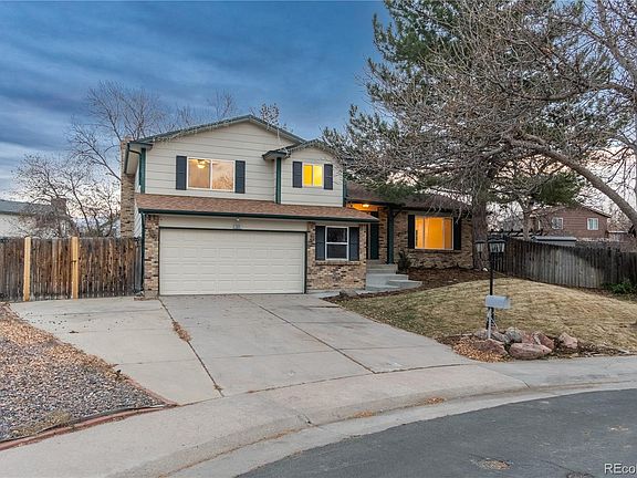 Beautifully updated 4br/3ba home blocks to Toll Gate trail in the heart of Aurora. With over 2700 square feet and a 2-car garage with a sun-facing driveway, this home sits on a fenced, large, pie-shaped lot on a cul-de-sac of like homes. The charming brick exterior and front porch is welcoming. Inside, new carpet and a spacious living room connects to a formal dining room. The gorgeous kitchen has a delightful layout that creates separate spaces without separation. Stainless steel, on trend drawer pulls and white cabinets complement the granite counters. The 4-burner range with overhead microwave, stainless fridge and an oversized stainless sink tie everything together. The luxury vinyl flooring and black contemporary metal railing separates the eating area from the carpeted, lower-level family room. A floor-to-ceiling brick fireplace creates a cozy setting for gatherings or just hanging out. The family room has Double French doors that open to a huge covered concrete patio; fantastic for outdoor entertaining and enjoying the expansive backyard. A half bath is conveniently located off the nearby laundry room and acts as a pass through to the 2-car garage. Upstairs, a spacious master suite includes an attached bathroom with 2 vanities and a gorgeous tiled oversized shower. An additional 2 bedrooms and a full bathroom share the upper level. In the basement there’s, a flexible bonus room, 2 unfinished rooms great for storage or workshop areas, and a big fourth bedroom. The backyard oasis has large mature deciduous trees, is widest at the back of the lot, and holds a secluded hot tub area. Fresh sod in the yard and new sprinkler system in front and back yards. Additional paved off-street RV parking is located on the side of the home within the fenced backyard. Beautiful, updated and multi-level, this “just right sized” home is nicely located off Mississippi and I-225 on a spacious lot.