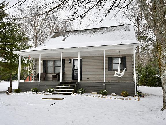 A wonderful waterfront home on 221 +/- acre all sports Wildwood lake, just minutes from I-75. Open floor plan with cathedral ceilings, hand scraped hardwood floor, knotty pine interior, solid wood doors, fireplace, loft sitting area, newer kitchen, updated baths, and 1/2 log siding. Kitchen features solid surface counters, tile backsplash, and in cabinet lighting. 3/4 bath has a large tile shower with glass doors and full bath has jetted tub and tile surround. Enjoy the sunset on the lake from your full front porch or the updated landscaped beach area with fire pit. The dock is included in the purchase of the home. Home comes mostly furnished. Call today to book your private tour.