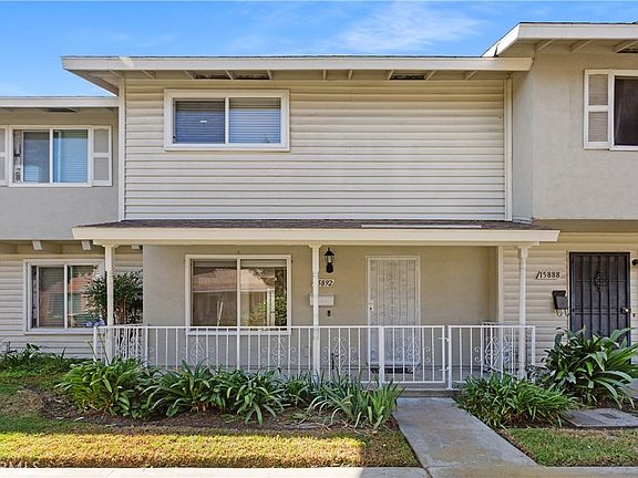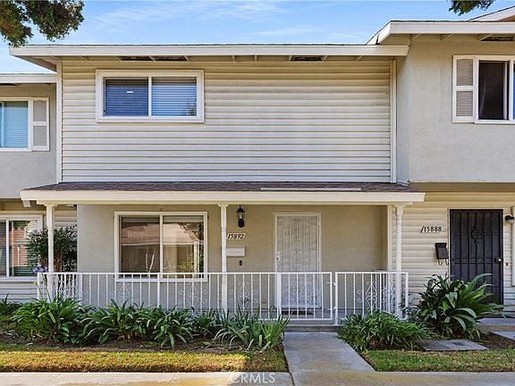 Welcome to 15892 Saddle Court in the beautiful and well maintained Harbor Villas. This 3 bedroom 1.5 bathroom townhome in the Harbor Valley Association is a true gem. From the moment you walk up to the unit you can appreciate the private front porch with white wrought iron railing. As you enter the home you will appreciate the new laminate flooring, fresh paint, recessed LED lighting, newly textured ceilings and the amount of natural light that enters through the all new dual pane windows. This home was just remodeled and offers all new flooring, paint, textured ceilings, recessed LED lights in every room, new quartz counter tops in kitchen and bathrooms, new toilets, new glass shower door, new faucets, new water heater and more. Although this is a 1.5 bathroom home, please note there is a bathtub and a standup shower enclosure in the master bathroom which are separated by a door, so you really have the functionality of having two full showers. There is a two car garage, inside laundry hookups and a nice rear private patio to enjoy. The HOA offers a swimming pool, kids pool, picnic area, playground, tennis court, basketball and covers trash. Conveniently located near good schools, shopping centers, parks, Disneyland, South Coast Plaza, Local Beaches, major freeways and much much more. You do not want to miss out on this property.