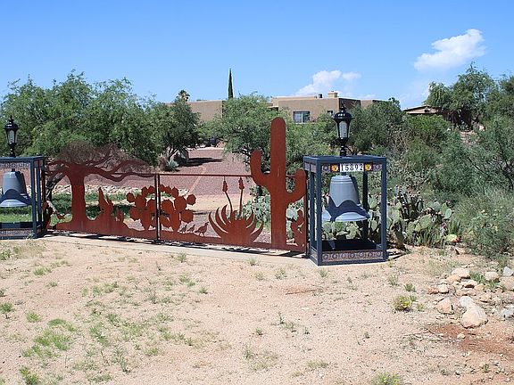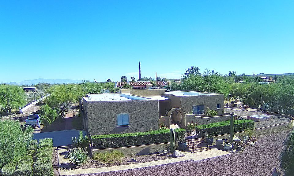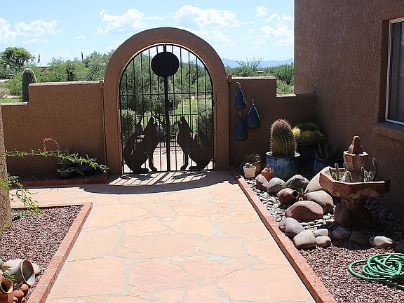 Beautiful Santa Fe style home on 1+ acre, corner lot. Welcome to Diamond Bell Ranch, a rural subdivision of site-built homes. Enjoy the gorgeous mountain views and low maintenance landscaping and walk the stone walkway to the inviting courtyard and covered porch. Welcome to this 1960 sq. ft, 3 bed, 2.5 bath, 2 car garage home. The spacious living room with a custom stone fireplace has a full view of the dining area and kitchen. The kitchen has plenty of storage space with wood cabinets and tile countertop/ backsplash. The perfect office/den open with double doors from the dining area. The master bedroom has an ensuite w/ dual sinks, jetted tub, and walk in shower. Double doors from the Master gives access to the backyard. Savor the moment the backyard offers while relaxing under the covered patio listening to the fountain or wander into the 2-car detached garage – perfect for the hobbyist. Wind down the evening on the stone patio w/ fireplace while enjoying this peaceful, relaxing, quiet and friendly lifestyle. This property is perfect for entertaining family and friends. Located about 30 minutes southwest from I19 and W. Ajo Hwy. (W on Ajo Hwy Left on Sasabe Rd (Hwy 286), Left on Diamond Bell Ranch Rd, Right on Stagecoach, Right on Aubrey) For Sale by Owner Call for an appointment to view.