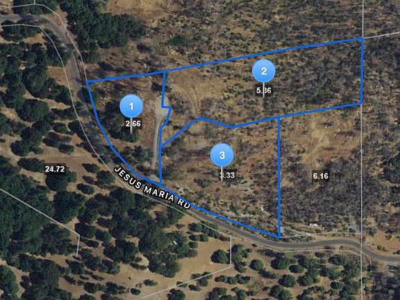 This ultimate mountain-top compound is comprised of three separate parcels totaling 11.35 acres on its own private secluded hilltop. There are 3 existing separate wells, buyer to investigate. Each lot has a ready-to-build upon, flat pad. Parcels are 5.36, 3.33 and 2.66 acres and are each zoned to hold one home plus an ADU. The former homes were burned in the Butte fire, but this remains a lush area with views for miles of green mountains. With endless 360 degree views, this is the perfect mountain top to build your multi-family homestead! With easy road access right off Jesus Maria, yet tons of privacy, power is conveniently located right to the property line. Grading is already completed on all three parcels, making this the ideal location to start building your dream today!