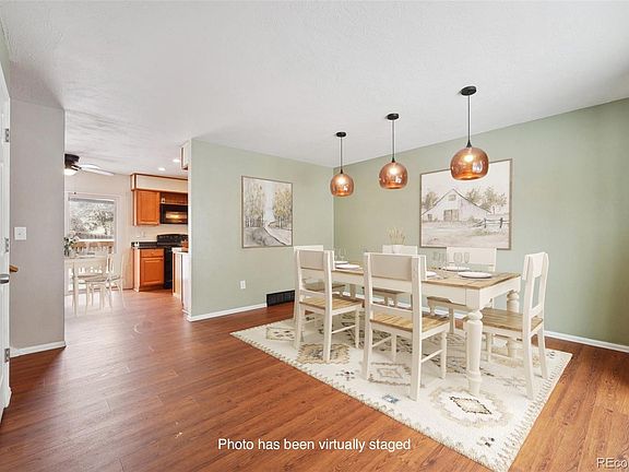 NE PRICE! Move-In Ready 4-Bedroom/2-Bathroom Gem with Extensive Upgrades! Step into this beautifully updated home, complete with BRAND NEW A/C and hot water heater. The dining room and kitchen welcome you with modern luxury vinyl plank flooring and an abundance of natural light streaming through large windows. Upstairs, you’ll find three generously sized bedrooms and a fully updated bathroom with double sinks, a new toilet, and fresh paint. The lower level offers a cozy family room with wood-burning fireplace with a new insert, recently repaired chimney, and custom built-ins with AMPLE STORAGE that bookend the fireplace with convenient firewood storage. You'll also find the fourth bedroom, and an updated second bathroom equipped with a new shower, vanity, washer/dryer, butcher block counters, abundant storage, and a utility sink. Enjoy peace of mind with a long list of upgrades, including newer flooring throughout, brand-new carpet, new light fixtures, new interior paint, and new security doors. The exterior features a 1-car attached garage, a brand-new sprinkler system, a freshly installed front fence and a water efficient/drought-resistant perennial garden that gives big savings on your water bill, and a newly landscaped backyard complete with grass and brick accents. Additional highlights include stained exterior brick, crawl space encapsulation, new 14-inch deep attic insulation, and leased Tesla solar panels for energy efficiency. Enjoy the convenience of nearby hiking trails, quick access to I-225 and I-70, and a commute of less than 20 minutes to the airport. This home is also close to shopping, dining, and entertainment options. Don’t miss your chance to own this stunningly upgraded home, complete with modern amenities, a warm, inviting layout, and gorgeous outdoor spaces.