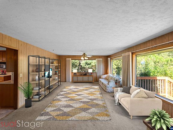 This is a unique opportunity to own country property spanning 8.46 usable acres, conveniently located near city amenities, outlet mall, and easy freeway access. The location on this "no through traffic" road ensures a tranquil environment with peaceful surroundings that guarantee privacy and serenity. The gated circular driveway provides excellent convenience for both entry and exit. The main level encompasses 2112 square feet, featuring spacious living areas that include 4 bedrooms, full bath, large open kitchen with cook island & Corian counters. The expansive 1797 square foot finished daylight basement offers a separate entrance, bedroom, bathroom, large kitchen and wet bar. It afford multiple living possibilities, making it perfect for dual living, home office, or additional rec room space. Recent updates include a new deck, new Heating & cooling system, new well, fresh exterior paint, and a refreshed tile roof. Additionally, the property boasts a 30' x 46' workshop with 9' doors, ready for your creative outlet or business needs. Property has nice landscaping, some mature timber and fruit trees.