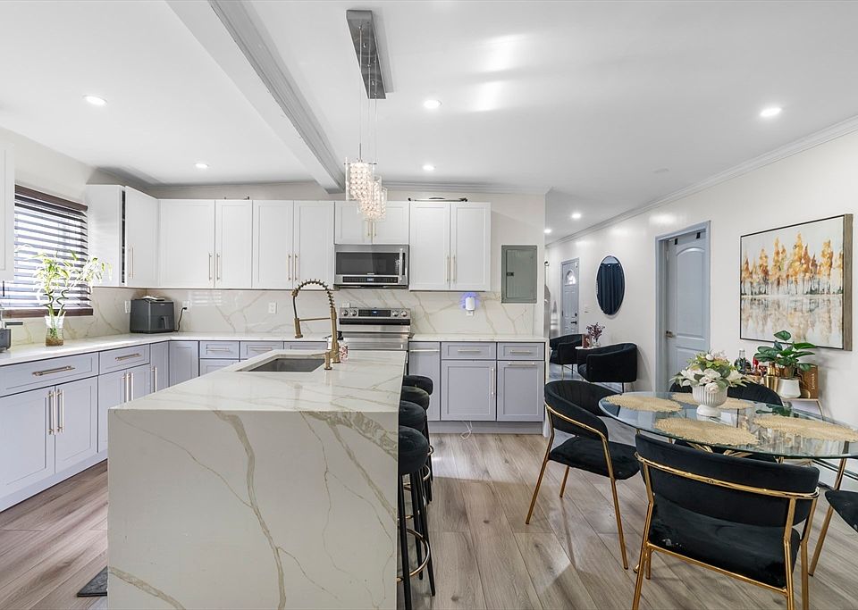 - Pantry, Upgraded Cabinets, Upgraded Countertops, Walk-In Closet(s), Bathroom with Shower Stall, Smart Thermostat, Remodeled, Walk-Up Attic, Heated Attic, Bathroom With Tub, Internet Available - Unknown, Living Room, Dining Room, Kitchen, Laundry Room