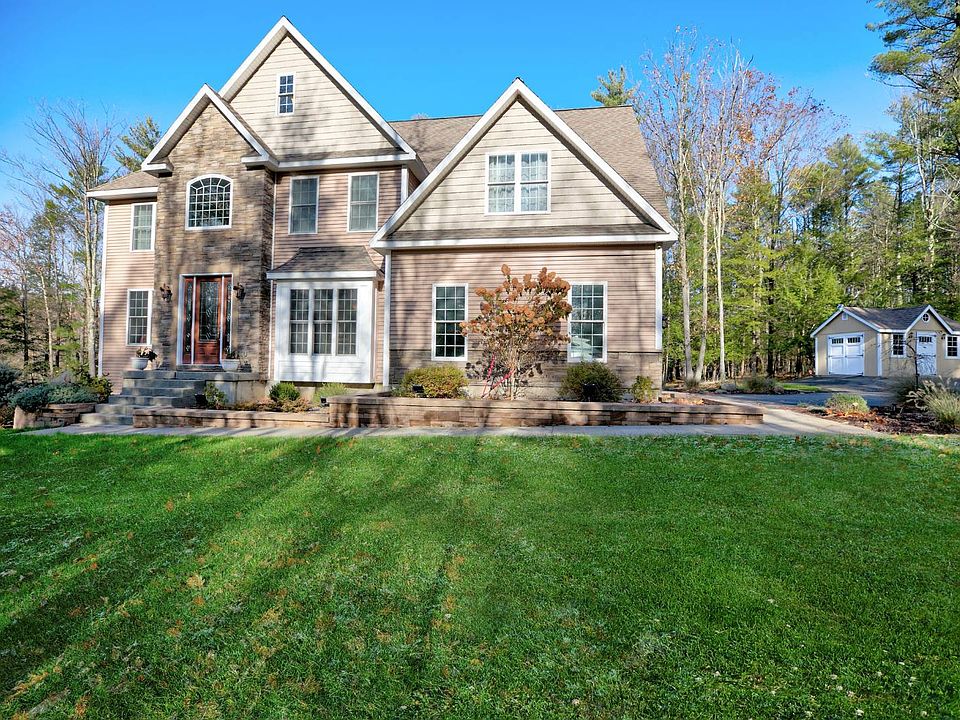 Amazing custom home offers elegance,Open concept floor plan with its double staircase,stunning foyer plus tranquility on 5 private acres.Multiple Gorgeous entertaining spaces inside & out w/ a covered screened in composite deck, stone fireplace,paver patio and fire pit. Chef's delight gourmet kitchen- largeisland, granite counters -Maple hardwood flooring with inlays. 5 spacious bedrooms that include a sensuous master suite with a sunlit sitting area, large walk-in closet,exquisite modern bath w/double sinks and rain shower. E-Z to finish basement offers large garden windows,french doors and already plumbed for a bathroom. Go for ahike on the many nearby trails or take a short walk to Burden Lake and to Kay's Pizza for Dinner. Everything you have been looking for...Welcome Home!