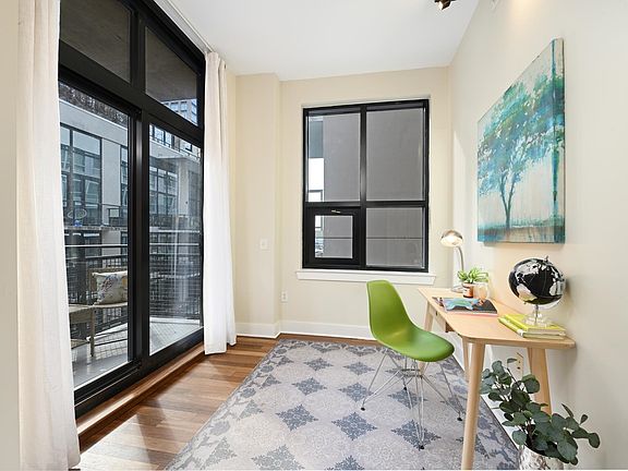 Welcome to Waldo Lofts, an award-winning boutique condominium in the highly coveted Powerhouse Arts District of Downtown Jersey City. This stunning two-bedroom, two-bathroom residence with an additional office space showcases a modern, loft-style aesthetic, featuring soaring ceilings and expansive floor-to-ceiling windows that flood the home with natural light.