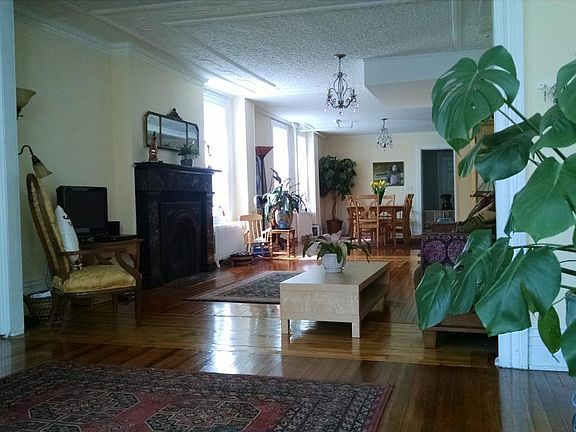 Huge apartment, over 1500 square feet with gleaming hardwood floors, huge windows on two sides (corner property), decorative mantle pieces, tin ceiling, modern kitchen and bath, new appliances, separate laundry room (in apt) with washer dryer. Wow!