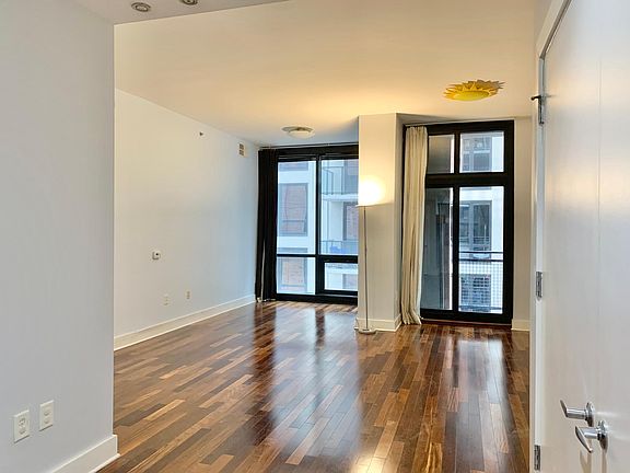 Huge 1BR in Waldo Lofts, rent directly from owner with no fees. Unit has washer/dryer, two large closets, balcony, floor-to-ceiling windows, hardwood floors, central HVAC. Ideal walkable location in the Powerhouse Arts District - right behind ShopRite/BJs, 2 blocks from PATH/Light Rail, minutes from parks, restaurants, bars. Waldo Lofts is a steel and concrete elevator building with a fitness center, secure package room, bike storage room, common terrace, on site super and cleaning staff. High speed internet (Verizon FiOS), heat, hot water, gas, included in rent. Electricity paid by tenant usually runs around $50-100/month. Cats and small dogs OK (no fee). Unit is available now and lease is for 12 months. No smoking allowed