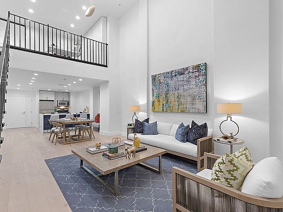 Move right into this gorgeous loft with 18' ceilings - just remodeled from top to bottom with high-end designer finishes. New kitchen has contrasting cabinets, custom quartz countertops with waterfall edge and wireless charging. It opens up to a spacious full size dining and living room, perfect for entertaining. Newly designed bathrooms with custom finishes/fixtures. Beautiful wide plank oak floors and recessed LED lighting throughout. Floor to ceiling windows add to the huge sense of volume in this special urban loft. Main floor features a den style bedroom with barn doors. Upper level features a large master bedroom plus a den/office/play area and custom built-in closets. Washer & dryer in unit. Concrete & steel building, elevator, gym, storage, remodeled lobby, 2 blocks to Path train to downtown and midtown. Few blocks to JC whole foods and Newport.