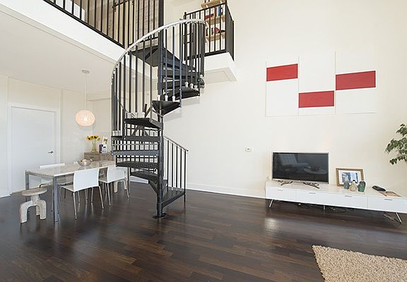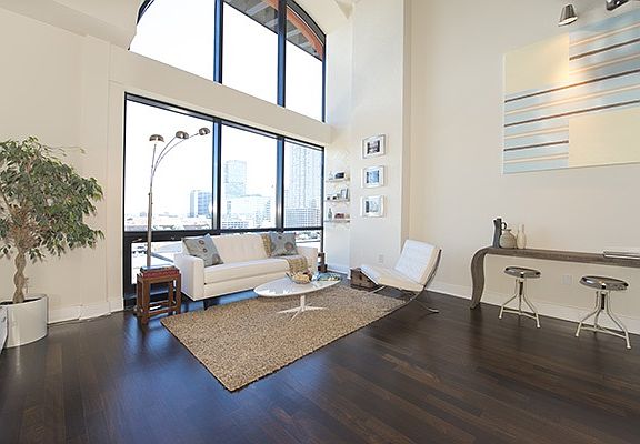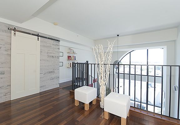 Bright and sunny duplex loft at Waldo Lofts. 1,028 sq. ft. of living space is complimented with beautiful northern exposure, giant floor-to-ceiling arch window, 18 ft ceilings & espresso stained chestnut hardwood floors throughout. Kitchen is outfitted with GE Profile stainless steel appliances and granite counter tops. In-home washer/dryer. 1 deeded parking space included. Waldo Lofts features gallery-style lobby, well-equipped fitness room, bike storage, and on-site superintendent.