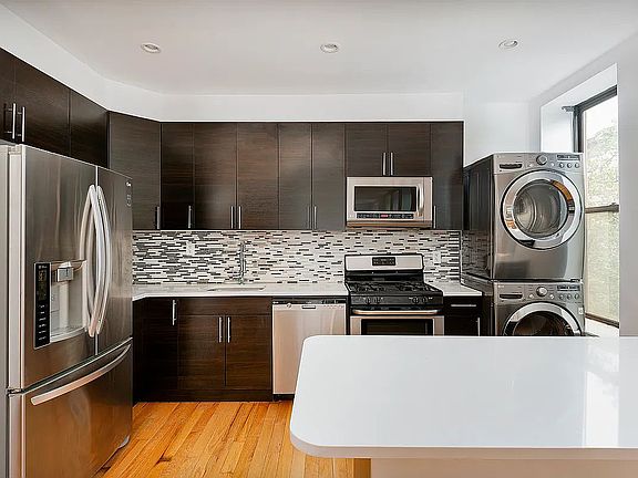 This beautifully renovated fourth floor Park Slope apartment offers a bright and airy living space with open dining and kitchen area, along with a spacious bedroom. The fully appointed separate kitchen features a suite of full-size stainless appliances and stone countertops, along with white shaker cabinets. The east-facing bedroom will accommodate a queen bed and also has ample closet space. A modern bathroom with vanity storage and soaking tub is tucked away down a short hallway. Modern amenities include an in-unit washer/dryer, dishwasher, and recessed lighting. Conveniently located near the N, R, W & D trains and in close proximity to Atlantic Avenue-Barclays Center, the building is surrounded by some of the best dining, shopping, and entertainment Brooklyn has to offer.