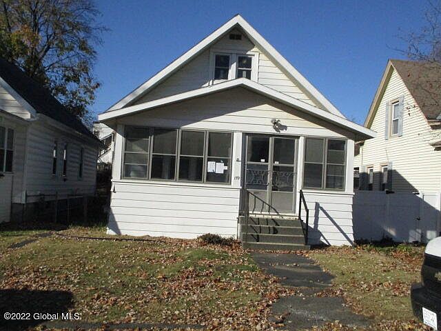 Great location for the large house with a enclosed front porch and nice yard with a garage off off alley way in rear.
