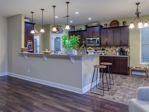 - RoomKitchenFeatures: Granite Counters, Pantry, Eat-in Kitchen, Floors-Vinyl, Cabinets-Stained, Backsplash-Tiled