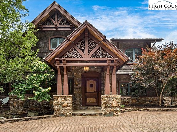 Introducing The Adirondack at Timber Ridge, a luxury mountain estate perched at over 4,100’ on a 2.5-acre plateau featuring sweeping long-range mountain views frame the great room’s cathedral ceilings, exposed timbers, and soaring stone fireplace. The gourmet kitchen with Viking appliances, island cooktop, and custom cabinetry flows to the formal dining room. Main-level primary suite offers a fireplace, spa-style bath, and individual balcony. Expansive decks feature covered dining with stone fireplace, stainless grill, and open lounge areas. Upstairs hosts guest suites, bonus rooms, and loft; the walkout level adds a game room, bar, guest quarters, and more outdoor living. Located in Bob Timberlake inspired Timber Ridge at The Coves, minutes to Boone, Blowing Rock, and Banner Elk, where world-class dining, boutique shopping, ski slopes, hiking, and year-round mountain adventures await.