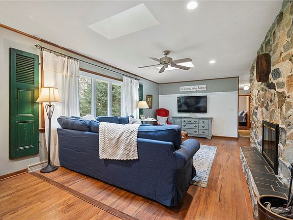 Situated on Lake Butler allowing fishing, swimming & canoeing in sought after Jackson Knolls is a sprawling brick ranch home boasting 3 bedrooms & 2 baths on the main level. As one enters off the serene front porch overlooking the exceptional lake w/ beach area & dock, they'll appreciate the entry & currently the formal dining room area. Continuing forward is the fabulous living room area that is accented by the stone wood burning fireplace & access to the back yard. The kitchen offers an island, stainless steel appliances & ample storage with access to the attached garage. The master bedroom boasts abundant closet space, ensuite & walkout access to the front porch/lakeview. The additional 2 bedrooms are generously sized & situated off the 2nd full bath. The basement is freshly carpeted in the finished 1/2 w/ fireplace & additional potential guest room or office. It offers an expansive unfinished section ready for storage & laundry with room for movie theater, wine room or more...