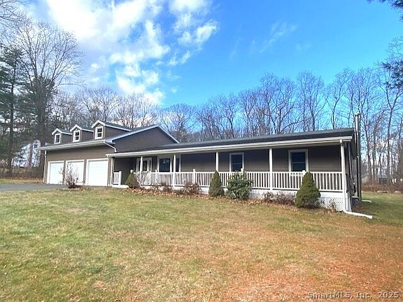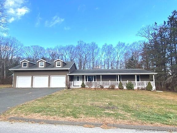 Discover this oversized, sprawling Ranch/Split level style home set on a tree-lined .69-acre lot in Tolland, CT. A welcoming open sprawling front porch leads into an airy interior featuring an open floor plan that combines the kitchen, dining, and living areas for seamless everyday living. A generous sized fireplaced family room provides the perfect gathering space; the main level includes three well-sized bedrooms and 2 1/2 additional bathrooms. The fully finished upper level serves as a private primary suite complete with a full bath and walk-in closet. An oversized three-car attached garage provides exceptional storage and convenience, and the full lower level allows for potential for future expansion. This home delivers space, comfort, and flexibility in a highly sought-after location-ready to make your own!