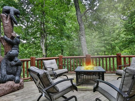 Turn key open floor plan home in a lovely setting overlooking a stocked pond. Total privacy, peaceful setting & immaculate condition. High end furnishings, quality construction & exceptionally charming with established rental history. 2 bedrooms, 2 full baths, great room, sunroom, laundry, kitchen & porches all make up the main level. The lower level consists of two additional bedrooms, large bath, Living room with pool table & wet bar. Large deck to take in the scenery along with a hot tub & sauna. Peace & tranquility just minutes from town!