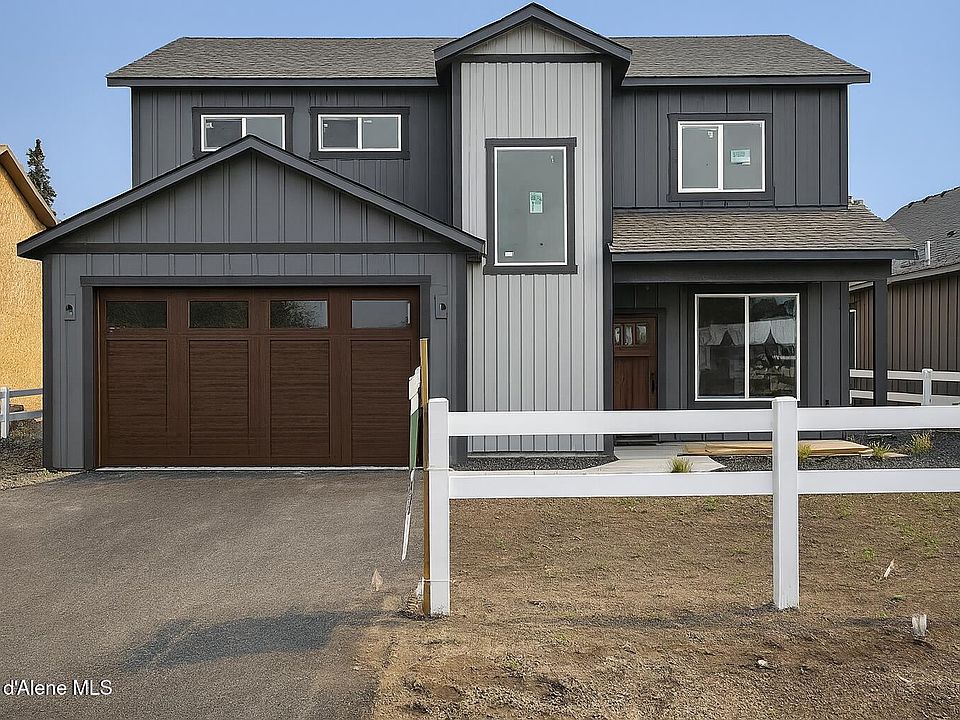 The Elk - Where Family Life Meets Mountain Living This spacious 3-bedroom, 2.5-bath, 2,368 sq ft two-story home is thoughtfully designed for modern family living. Featuring vaulted ceilings with wood-wrapped beams, luxury laminate plank flooring, and a cozy gas fireplace, the open-concept layout is perfect for gathering and relaxing. A bonus loft offers flexible space for work or play. The gourmet kitchen includes a large granite island, walk-in pantry, GE Café appliances, and custom cabinetry throughout. The retreat-style primary suite boasts a walk-in shower, double vanity, and walk-in closet. Enjoy covered patios plumbed for gas and take in year-round mountain views. The landscaped and fully seeded lawn includes sprinklers, and the durable 50-year composite shingle roof ensures lasting quality. Optional 30×40 shop upgrade available, with or without ADU on select lots. Located near Lake Pend Oreille, Schweitzer Mountain, golf, hiking trails, and downtown Sandpoint.