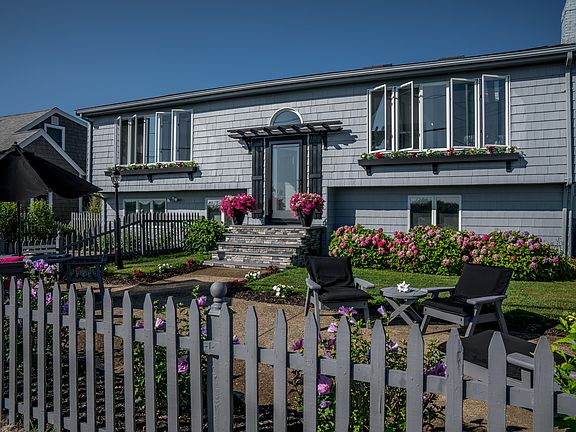 This is a blast of sunshine and beauty with one of the best direct oceanfront (over-the-dunes) views on Beach Ave! A true summer beach house, but owners have lived there year-round for many years and have created a very special home... Ocean in the front yard, and private SECRET GARDEN, filled with cherry and apple trees, in the back yard!! Walls taken down to afford all-open floor plan in living/dining and kitchen rooms, as well as combining 2 bedrooms into one large master... all with truly amazing views!! Lower level has family room, bedroom, full bath, study and "summer kitchen", for prepping for all the parties you WILL be hosting! Front yard is adorable with adequate seating for enjoying the beach. Deck off the dining room overlooks the treed back yard... such an wonderful contrast of beach and gardens! Newer baths, roof, appliances... totally move-right-in-and-enjoy condition! This is not a drive-by... MUST GET INSIDE TO APPRECIATE!