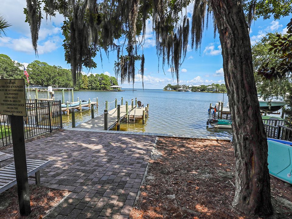 Beautiful Waterfront Lifestyle on the Bay offer Views of the blue water off Mack Bayou. Nestled in Sacred Oaks, a neighborhood that lives up to its name with grand oak trees draped in southern moss, this enclave Excellent located close to upscale Grand Boulevard shops and the iconic white sands of Florida's Scenic Emerald Coast Highway and 30A.Beautifully maintained 3-bedroom, 2.5-bath home provides an open living, dining, and kitchen design while highlighting the stunning water backdrop. The glider window opens to a screened porch and patio ready with a fire pit for smores. This home is perfect for watching dolphins, coastal birds, spectacular sunsets, and sunrises. Enjoy watersports right from your backyard. Boat ramp next door with no motorboats to keep the calm peaceful environment. Adjacent to your backyard is a boat launch to enjoy paddleboarding, fishing, canoeing, or mooring your own boat and exploring the bay. One home site away is a large boat dock for owners to enjoy.