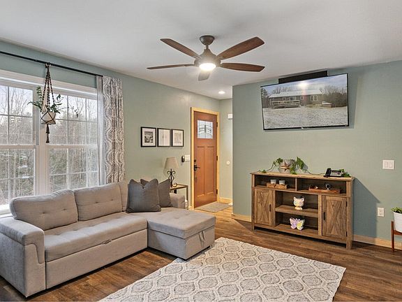 Welcome to your peaceful country retreat! This beautifully-cared-for ranch sits on 5 quiet acres, offering the perfect mix of comfort and charm. Step inside to a sunny open layout featuring a bright kitchen, open living room, and dining area - perfect for gatherings or relaxing at home. The main level includes three comfortable bedrooms and a full bath. Downstairs, the partially finished walkout basement brings in natural light and features a cozy rec room with a pellet stove, a second bathroom, and laundry space. Need extra room? The oversized 3-bay garage includes a loft - great for storage or your dream workshop! Updates include a heat pump, efficient water heater, and a generator hook-up for added peace of mind. Outside, enjoy a level backyard, large deck, and storage shed. **Bonus** Thinking about homesteading? The chicken coop and laying hens are negotiable! This one won’t last - schedule your showing today and come fall in love!