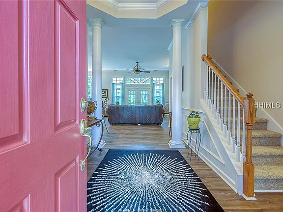 4 BR with large den/office/playroom/homeschool classroom...you pick. Open and spacious, this gorgeous home has been immaculately maintained and upgraded with new floors, granite counters, stainless appliances and whirlpool tub, you can unwind in the lap of luxury. Conveniently located close to HHI, Historic Savannah, Beaufort and Old Town Bluffton, you are never far from the action. Enjoy cooking in your gourmet kitchen or relax on the screened in patio with golf and wooded views. Huge bonus room upstairs can be 5th BR, playroom, office or...? Other features are first floor master, extended garage, fenced in yard.