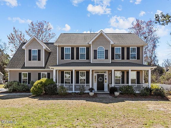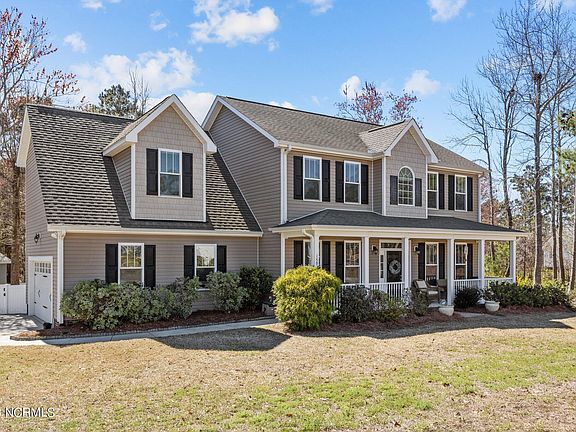 Beautifully situated on a large corner lot at the entrance to Quailwood Village, this home offers abundant space for all your indoor and outdoor entertaining. Features include an open layout, formal dining room with tray ceiling & wainscoting, crown moulding throughout the first floor, sizable principal bedroom, upstairs laundry room and a great bonus room for telecommuting or home schooling. Outside you'll find a lovely front porch perfect for rocking chairs, open back deck, fenced backyard and even a few fruit bearing trees. This community is conveniently located in the heart of Cape Carteret close to shopping, restaurants, Star Hill Golf course & pool, bases and the beach. Town residents also have access to parks and the opportunity to purchase a boat ramp pass. Showings will begin on 3/15/23.