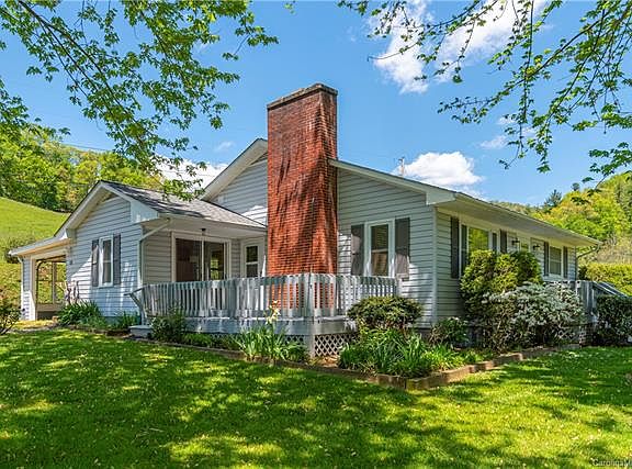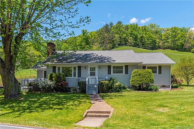 Great home in rural setting and only a 15 minute beautiful drive through Mars Hill to downtown Asheville. Home is spacious with refinished hardwood floors, fresh paint, high end replacement windows and new LEVOLOR blinds installed throughout. Extra room to be used as a bedroom, dining room, office or den with built in wood shelving. Add to the warmth with a solid brick fireplace with propane logs in the very large living room. Split bedroom plan with spacious master bedroom and 2 additional bedrooms (hardwood floors under carpet) with jack and jill half bath. Property is a tranquil setting with blueberries, grapes, roses and beautiful native mature landscaping. Spend your time entertaining on wide side porch accessible from the kitchen and living room. Bright single garage with windows to allow light into the kitchen. New roof in 2014. Home has been well maintained and cared for and ready to offer a buyer a warm, cozy place Home. is also offered with 12.34 acres