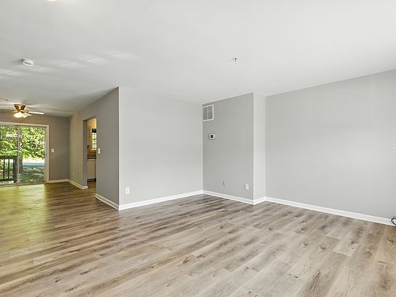 The main level features a comfortable living and dining area that flows into a functional kitchen equipped with a full-size fridge, dishwasher, and stove. Upstairs, the primary bedroom includes a private bath, while two additional bedrooms offer plenty of flexibility for guests, a home office, or extra storage. Central A/C keeps the home cool all summer, and the layout is designed for easy living.