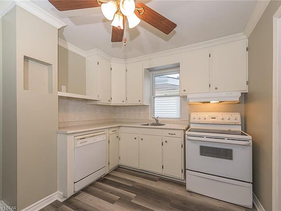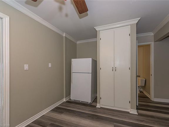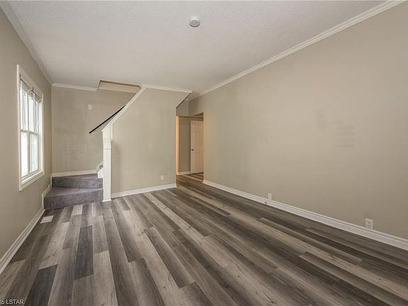 Great 1.5 storey detached home a short walk to parks, walking trails and the Thames River. You enter into an enclosed porch which doubles as a three-season/mud room. On the main floor there a is large room with crown molding that can accommodate a living room and dining room. There is also a big bedroom to the side and another bedroom at the back. The kitchen is bright and spacious as is the full bathroom. On the second floor you will find a very big master bedroom with its own 2-piece bathroom. All new flooring throughout both floors! The basement offers laundry and lots of storage. The fenced back yard boasts a deck, a 16'x9' brick workshop and a 10'x7' metal shed. Water heater owned, panel replaced and 5 appliances included.
