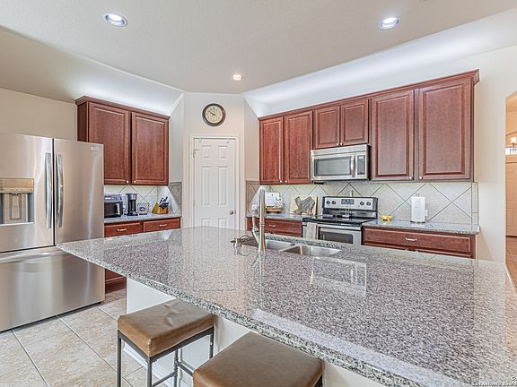 Discover this well-maintained home in the sought-after Charleston Parke neighborhood of Cibolo. Built in 2015 and offering 3 bedrooms, 2 bathrooms and approximately 1,913 sq ft of living space, this residence combines modern finishes with smart layout and excellent school zoning. From the moment you arrive you'll appreciate the curb appeal, two-car garage and low-maintenance yard. Inside, the kitchen features granite countertops, 42-inch cabinets, stainless steel appliances and an oversized island - ideal for both everyday living and entertaining. The open-concept living/dining area flows into the private owner's suite which boasts a walk-in closet and a large bathroom with separate vanities and a walk-in shower. Two additional bedrooms and a full hall bath provide space and flexibility for family, guests or a home office. Located within the SchertzCiboloUniversal City ISD (SCUCISD) and just minutes from shopping, dining, I-35 access and the nearby Randolph Air Force Base/military market, this home delivers both convenience and value.