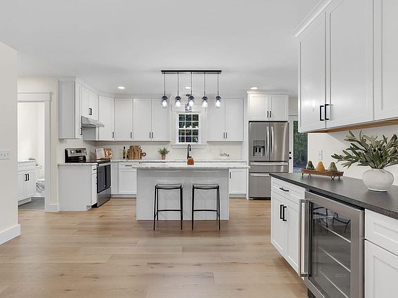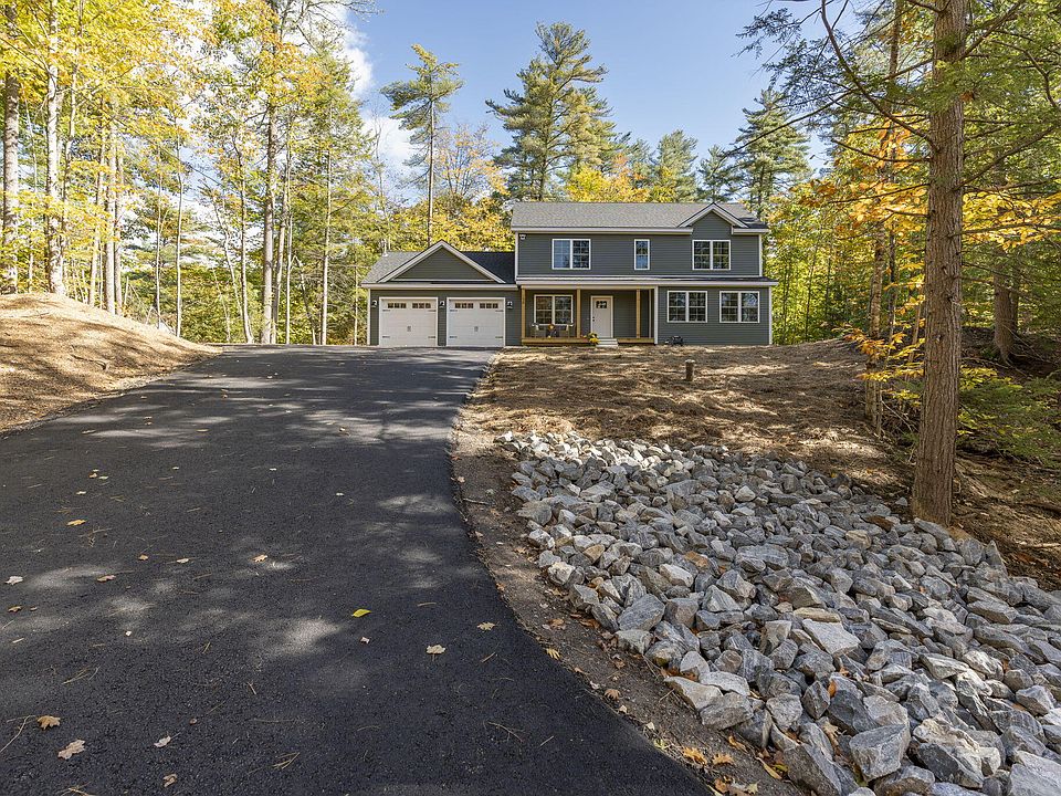 This brand-new colonial-style home, offering modern aesthetics and conveniences you'll love, is ready for you to enjoy this holiday season! Located at the end of Brown Cove Road, it provides both quiet serenity and convenience, as it's just minutes away from the Windham shopping district. The open-concept layout connects the kitchen, dining, and living areas, creating an inviting flow ideal for family life and entertaining. The kitchen features quartz countertops, a spacious island, and stainless-steel appliances. In the dining area, a custom buffet with a built-in beverage cooler and generous cabinetry adds both functionality and style. Just off the kitchen, the family room offers a place to enjoy time with friends and family, while also connecting to a versatile media room or second family area—perfect for movie nights, a playroom, or additional lounge space. Upstairs, the second floor boasts a comfortable primary suite complete with a double vanity and a spa-like shower. Two additional bedrooms, a full bathroom, and a dedicated laundry room round out this level, ensuring comfort and convenience for the whole household. Outdoor living spaces include a welcoming front porch and a large back deck, where you can relax and enjoy the surrounding wooded views. This beautiful home offers a peaceful retreat while keeping you connected to everything Windham has to offer—comfort, style, and modern living all in one.