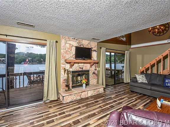 Beautiful lakefront home just steps from the water. Minutes to grocery store, restaurants, the strip and 3 golf courses. 3 bedroom/2bath. Updated large lower level with new flooring, open kitchen with new appliances and cabinets. Fireplace to take the chill out on those fall or winter nights. Large master with new king bed and your own private balcony to watch the sunsets. Level parking just steps from front door. Deep water, with dock with a single 10X24 boat slip with swim platform and brand new composite decking. Sit on your deck and watch the gorgeous sunsets over the lake. View of 3 displays of 4th of July fireworks from your own deck and dock. Located at the end of a private lane with Ameren lot next door, can't be built on. This home sits in a large cove with a great view of the lake. This home comes fully furnished minus personal items. This home would a great full time home or a family retreat. Put this property on your list to see today!!