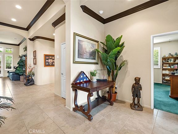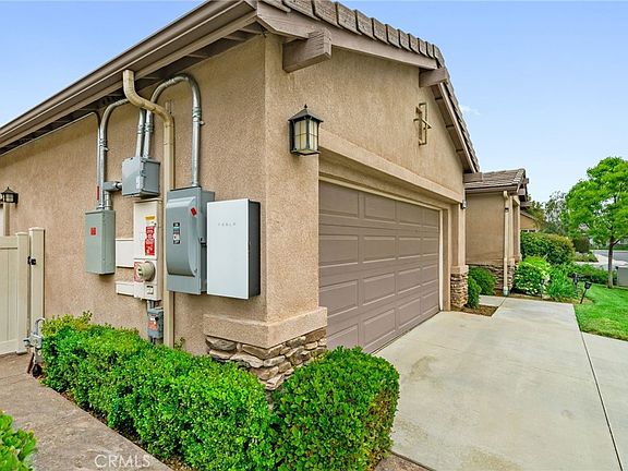 Beautiful Landmark II Model in Four Seasons 55+ Active Adult Community. Single Story, 4 Bedrooms, 3 Baths, 2792 sf, and Lot 8276 sf. Paid off SOLAR PANELS & TESLA BACKUP BATTERY! Fantastic Gourmet Kitchen with Stainless Appliances including Refrigerator, Butler's Pantry, Dark Cabinets with Organizers, Granite Counters & Backsplash and Large Island with Seating. Upgraded with custom shutters throughout and a beautiful, custom designed bar to host gatherings. Master Suite offers Dual Vanities w/Seating area, Sunken Tub, Walk-in Shower, 2 Walk-in Closets with Organizers, Large Bedroom with Light/Fan combo and custom Window Coverings. Lovely Guest Bath has Granite Counters from adjoining Bedroom. Jack-n-Jill Bathroom with two adjoining Bedrooms. Open and Spacious Floor plan with Living, Formal Dining and Family Rooms. Inside Laundry Room with Sink, Storage. High Ceilings, Beautiful Crown Molding, Custom Paint, Upgraded Lights, Ceiling Fans, Recessed Lighting, Ceramic Tile Floors, Carpeting in Bedrooms. French Doors leading out to Fantastic Backyard; Large Covered Patio, Waterfall, Above-Ground Spa, Fruit and Palm Trees plus Lush Landscaping. Amenities: 3 Club Houses: Social Clubs, The Bistro, Ballroom, Crafts, Movie Theater, Library, Billiards, Beauty Salon & Spa, 3 Gyms, Classes, Tennis Courts, 3 Pools (1 Indoor), Pickleball, Walking Trails, Lounge Areas, and so much more. Freeway Access, Near Restaurants and Shopping, driving distance to Mountains, Oak Glen, Cabazon Outlet Mall and Palm Springs plus numerous Golf Courses. Truly a Home to Entertain Family & Friends!